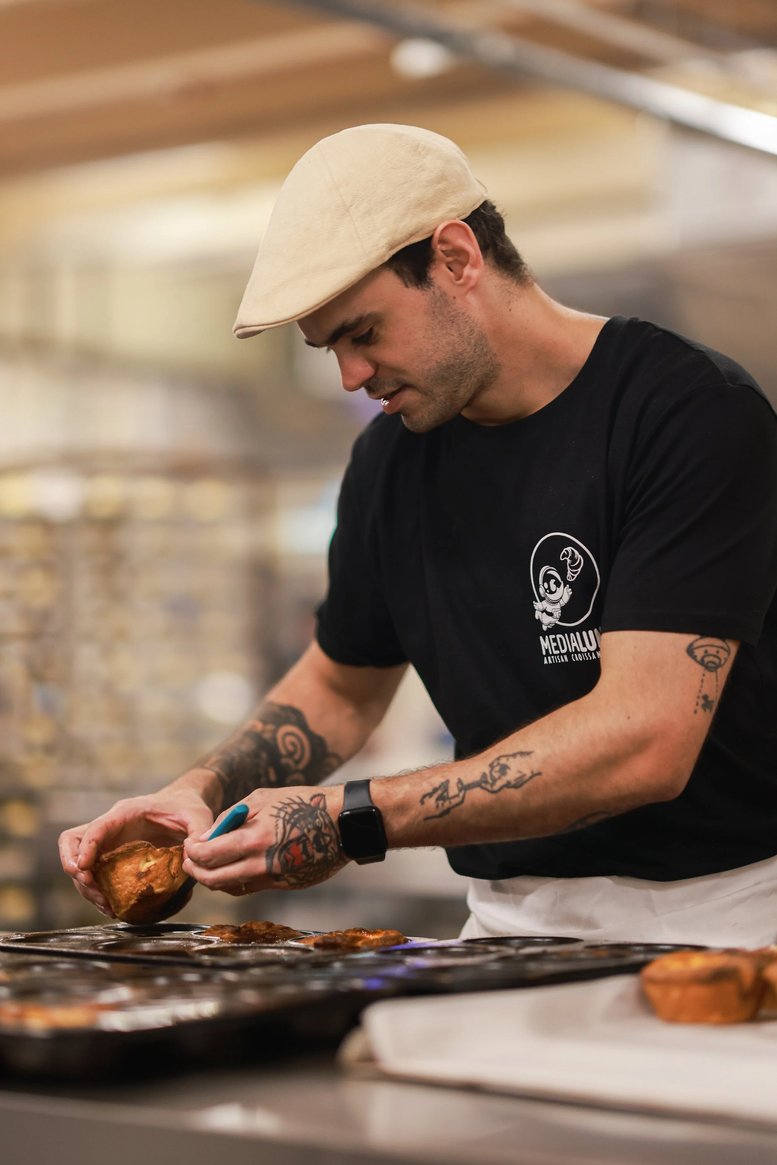 Medialuna specializes in croissants, but we also offer a variety of high-quality pastries, such as beautiful and delicious cruffins.